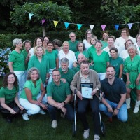 Foto's van ons tuinconcert bij een van onze koorleden. Tijdens dit concert werd ons lid Ben olde Klieverik benoemd tot erelid van ons koor. Ben is sinds de oprichting van ons koor onafgebroken lid geweest. Helaas kan hij niet langer actief meezingen vanwege gezondheidsredenen. Het werd een hartverwarmende avond met veel bekende gezichten: oud-leden, trouwe volgers, sponsoren en vrienden van Cantabilé.