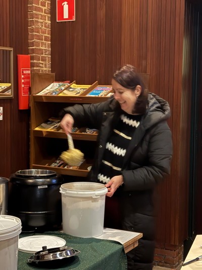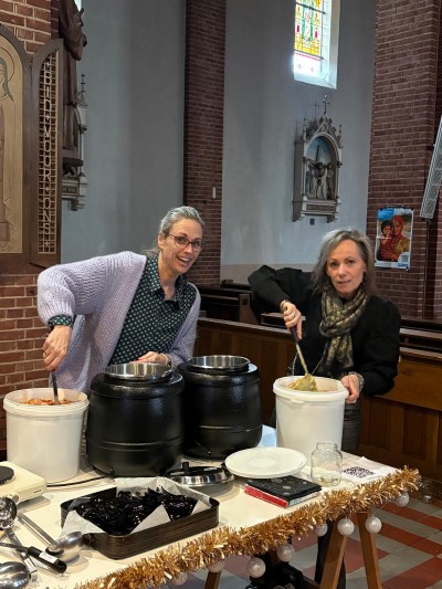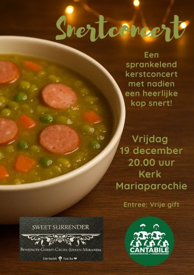 Dit jaar gaven we ons kerstconcert een verrassende twist en maakten we er een écht snertconcert van. Terwijl de bezoekers de kerk binnenkwamen en werden verwelkomd met een kopje koffie of thee, vulde de ruimte zich al met de heerlijke geur van vers gemaakte snert.